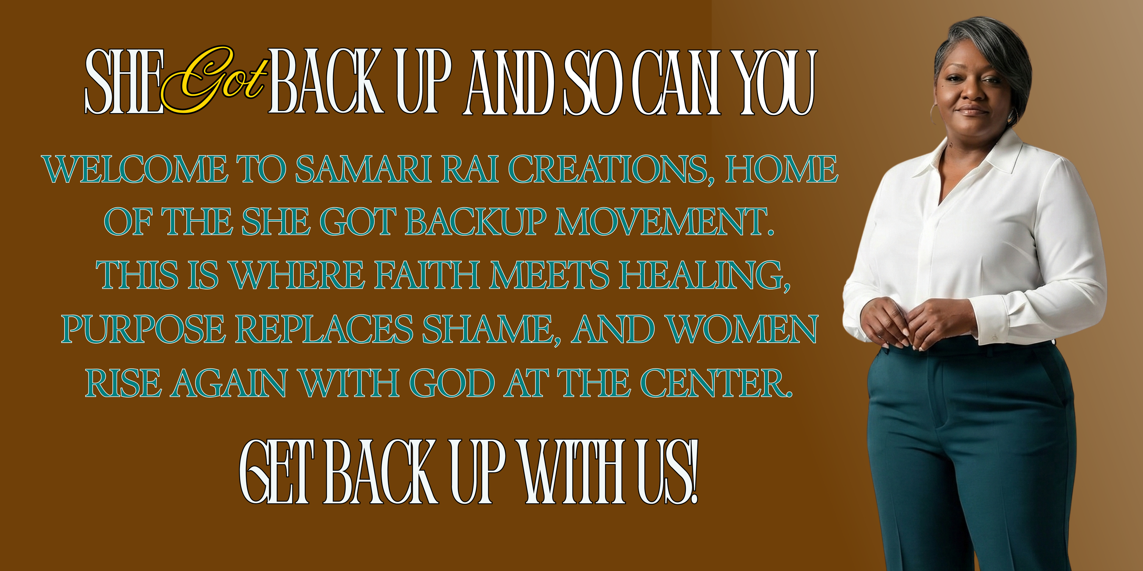 Founded by Keisha: faith coach, entrepreneur, and woman who knows firsthand what it means to fall, rebuild, and rise again, SaMari Rai Creations was born from real life, real faith, and real resilience. It is the creative home and foundation from which the She Got Back Up movement was built. This movement exists to help women grow spiritually, heal intentionally, and walk forward in purpose with God at the center. We serve women navigating shame, self-doubt, spiritual dryness, and identity loss; women who know God has called them, yet need guidance, encouragement, and support to stand confidently in that truth again after life’s hard seasons.Through faith-based resources, encouragement, and transformational experiences, the She Got Back Up movement help women rise again stronger, wiser, and anchored in who God says they are.